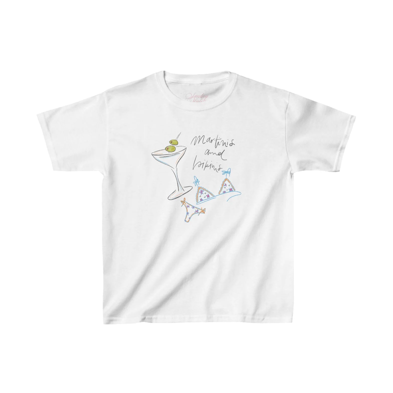 The Martinis & Bikinis baby tee top is super soft, comfy, and vintage-inspired. The soft cotton blend is comfortable against your skin with the perfect crop at the hips.